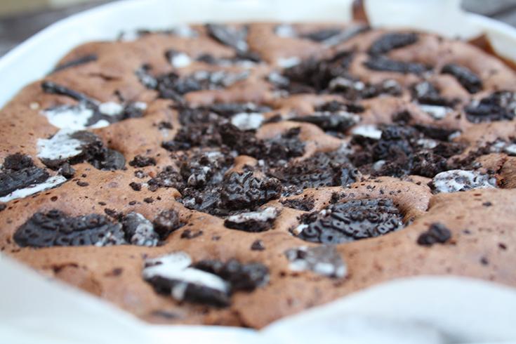 últimamente, todo lo que lleva chocolate se le está añadiendo oreo!!! lo último que he visto ha sido tableta de Milka con oreo... aún no lo he probado, pero está es la segunda receta de brownie de oreo que he preparado... un brownie de chocolate esponjoso, con una capa dura de chocolate y los trocitos de la galleta de oreo!!!